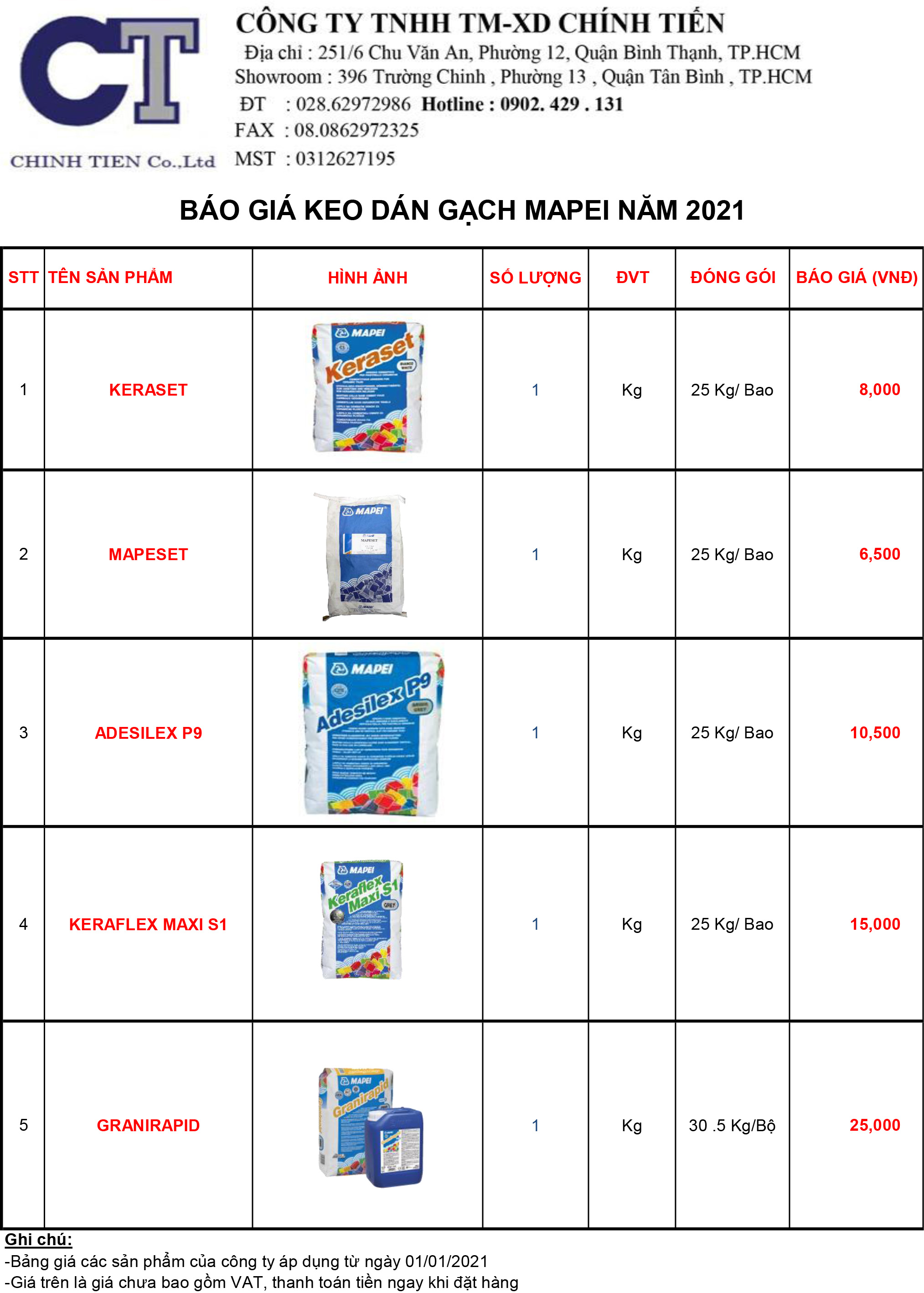 BÁO GIÁ KEO DÁN GẠCH MAPEI NĂM 2021