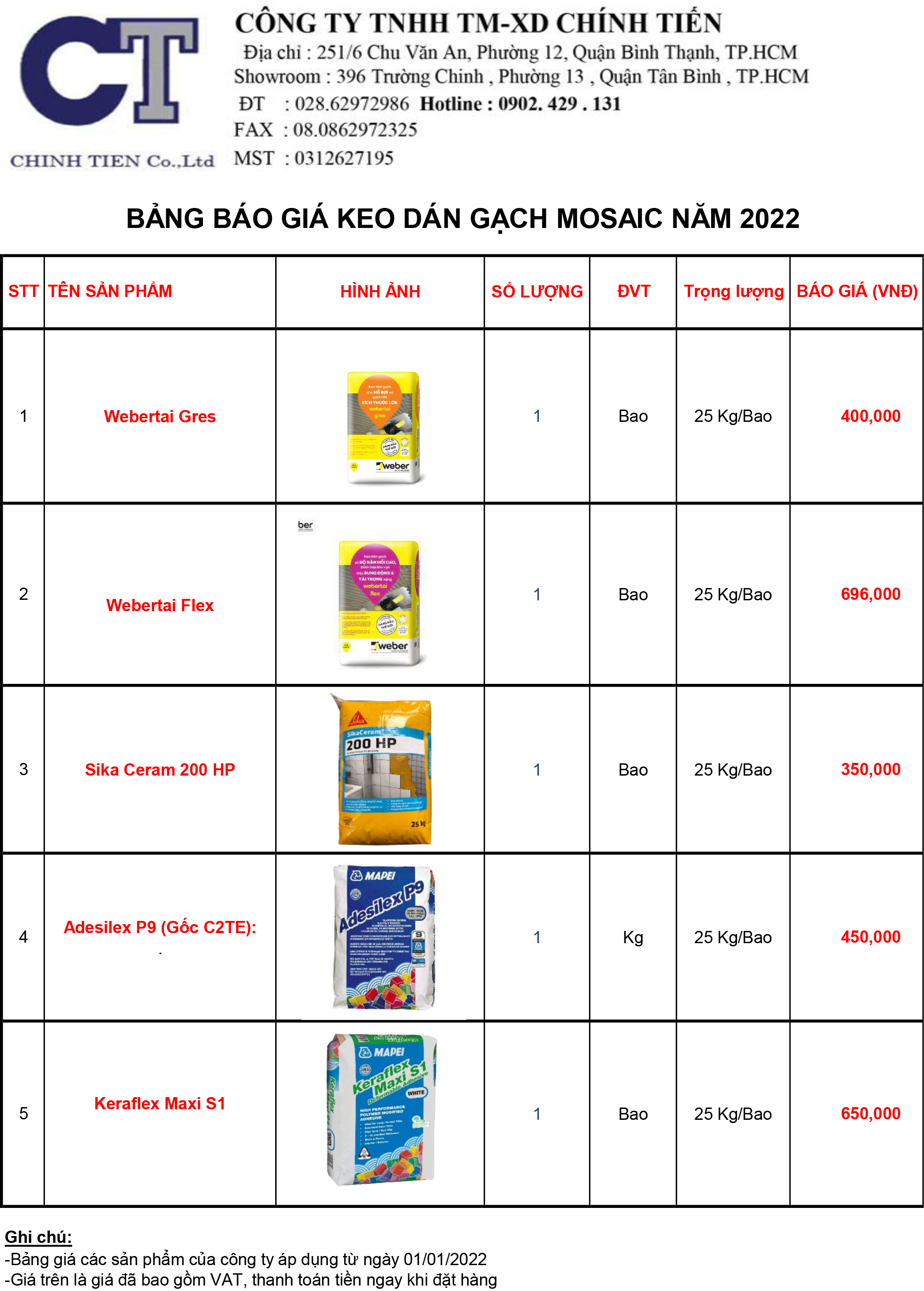 BÁO GIÁ KEO DÁN GẠCH MOSAIC NĂM 2022