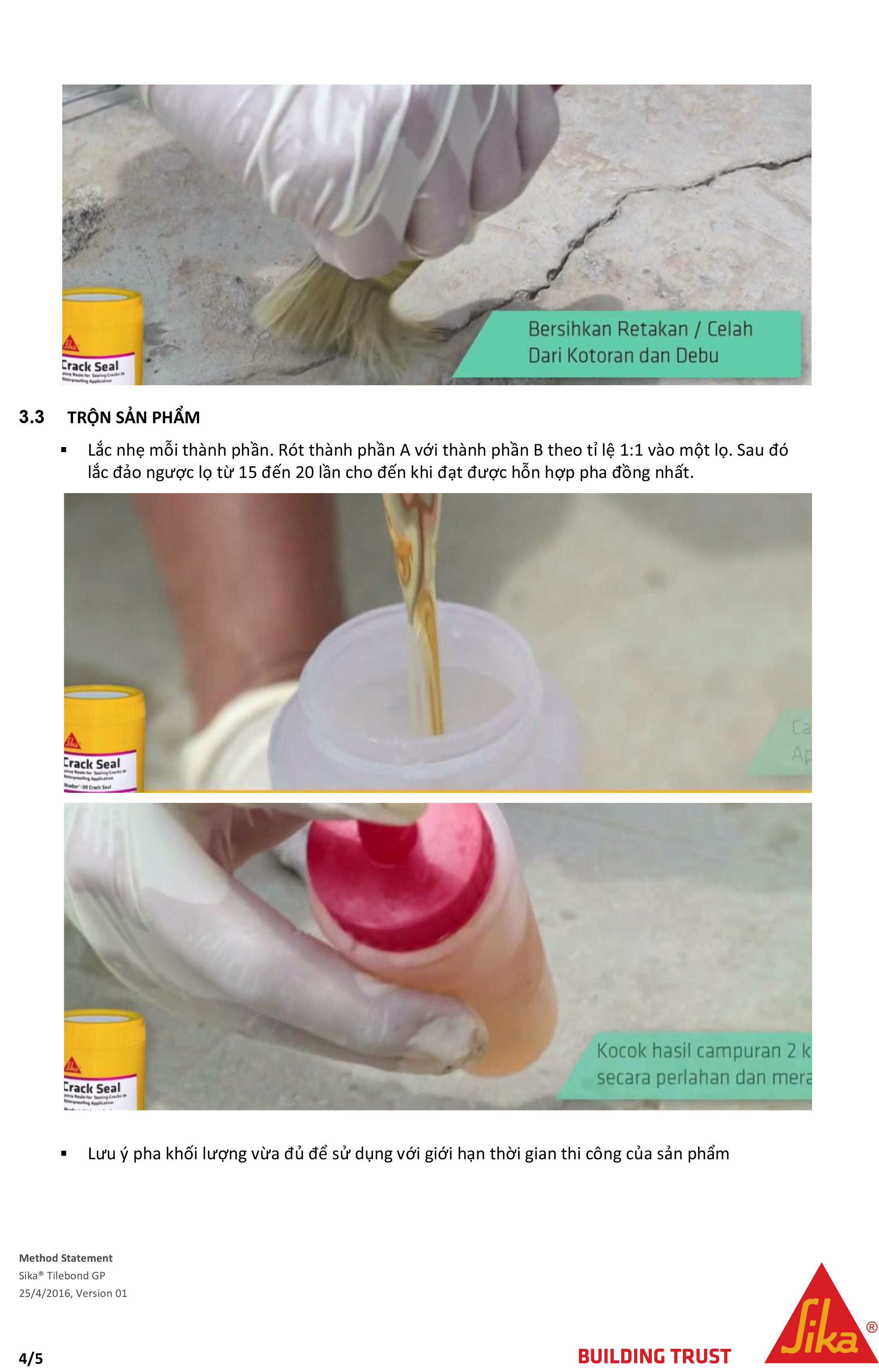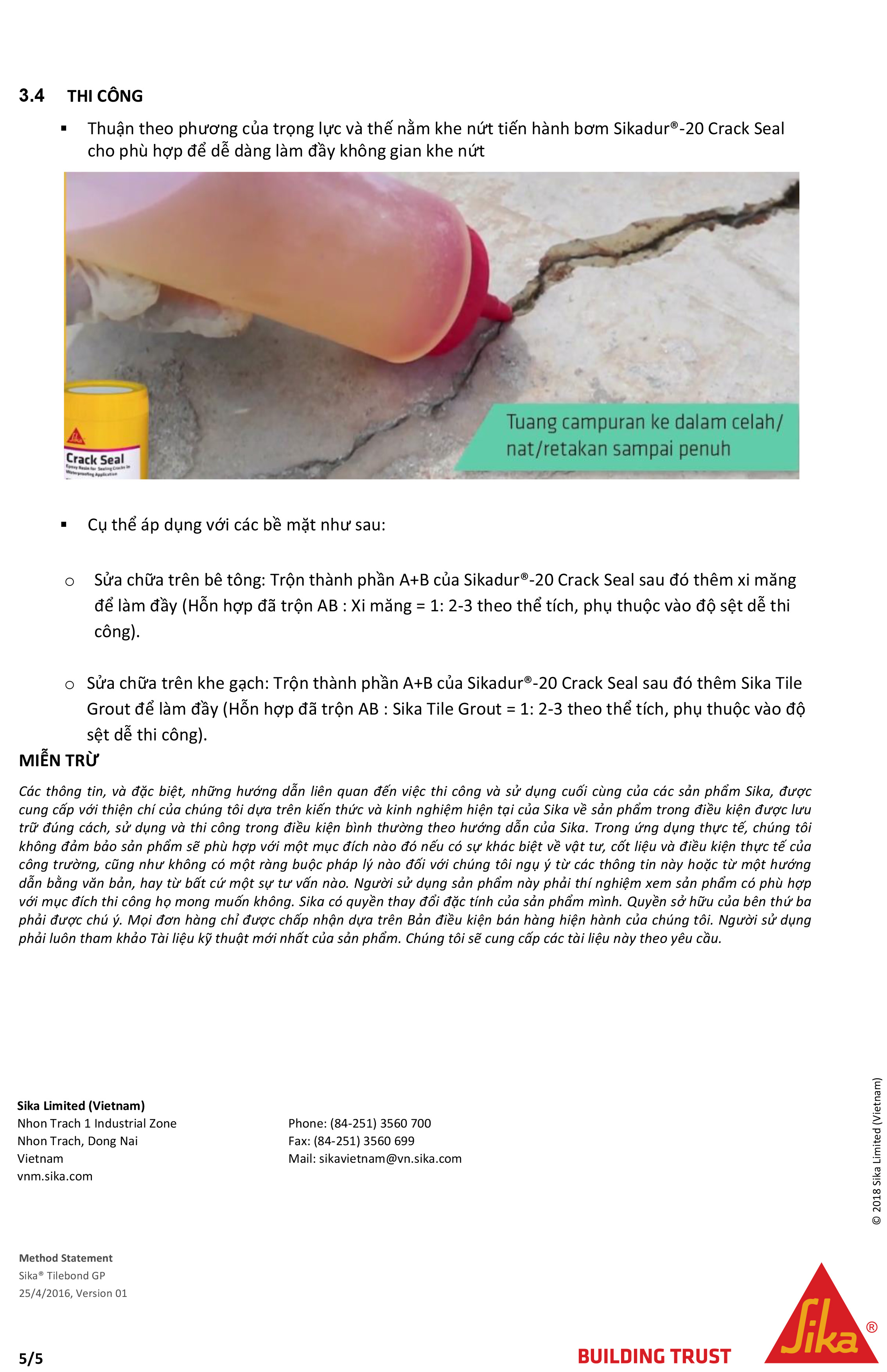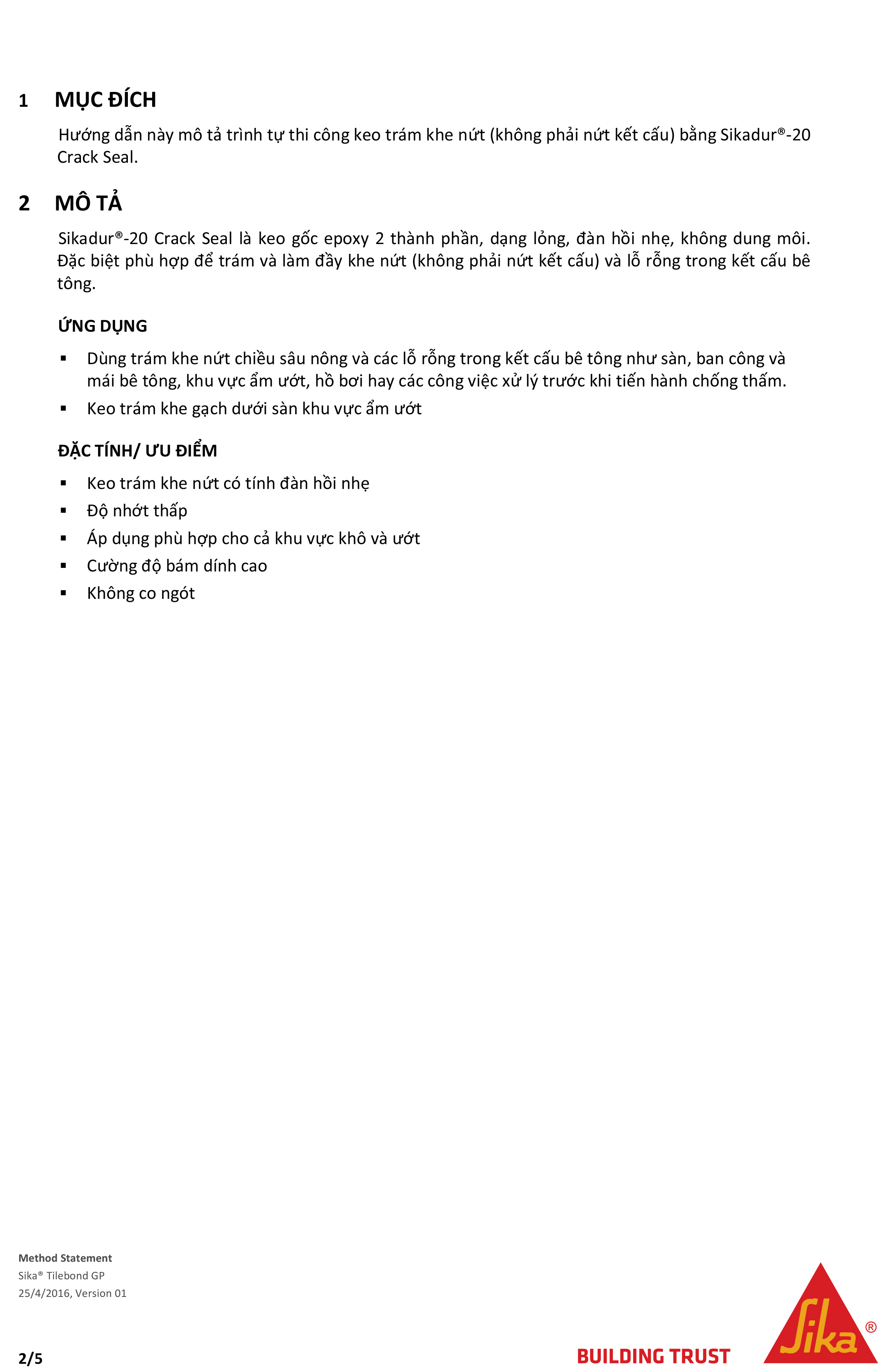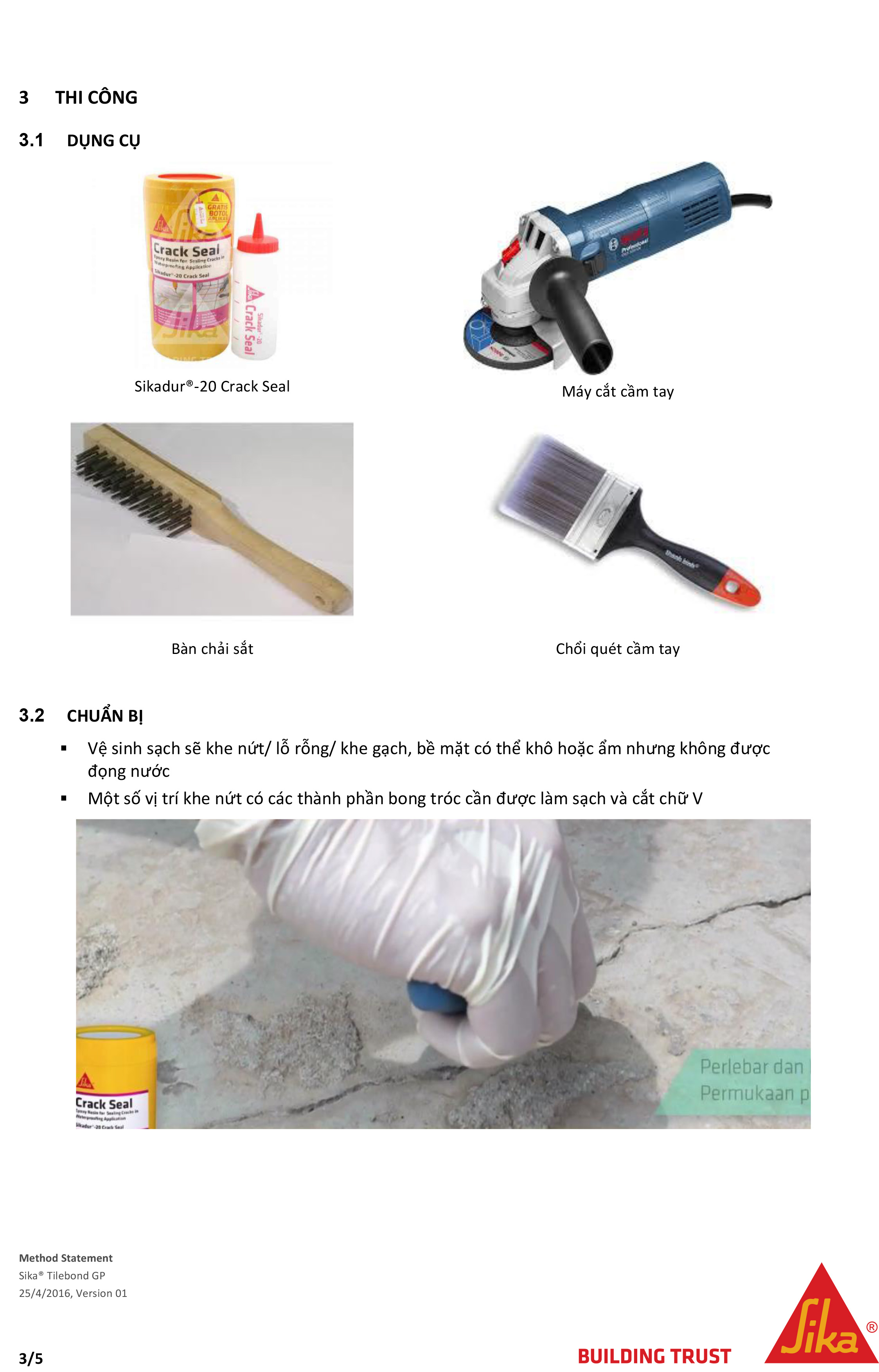 HƯỚNG DẪN THI CÔNG SIKADUR®-20 CRACK SEAL XỬ LÝ NỨT BÊ TÔNG
