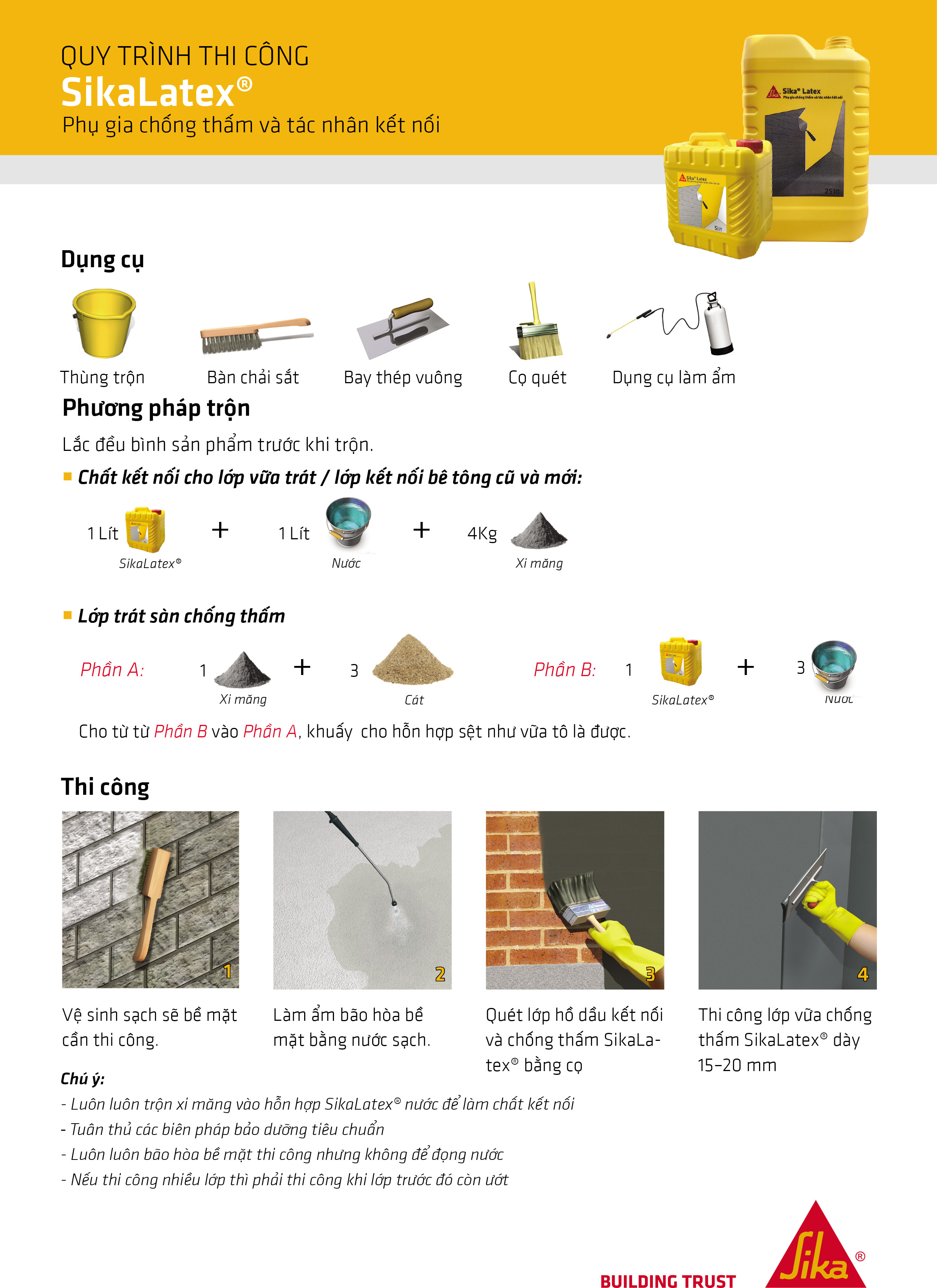 1 Lít SikaLatex® TH + 3 Lít Nước + 4Kg Xi măng + 3 kg Cát