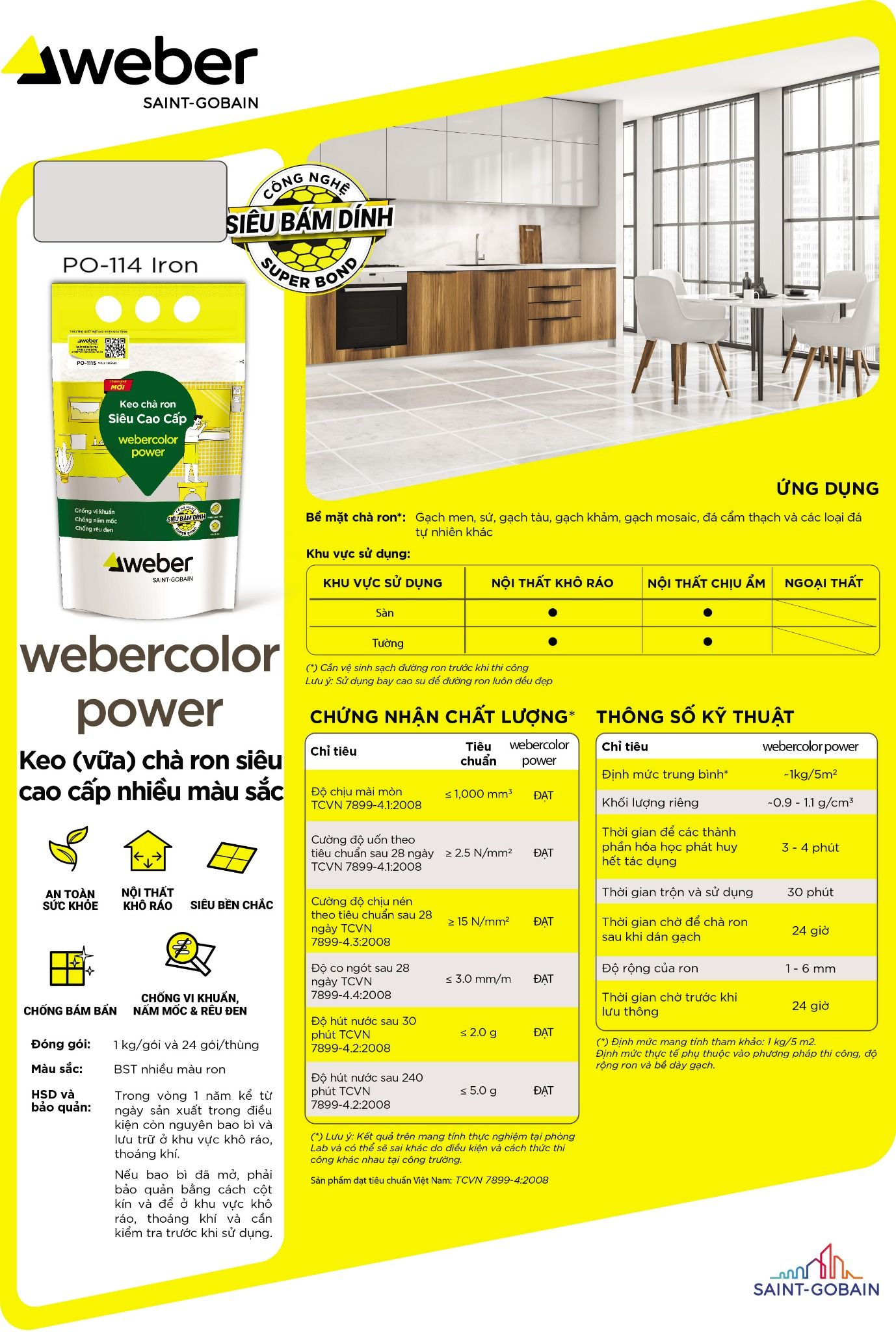 Thông số kỹ thuật Keo chà ron weber PO-114 lron