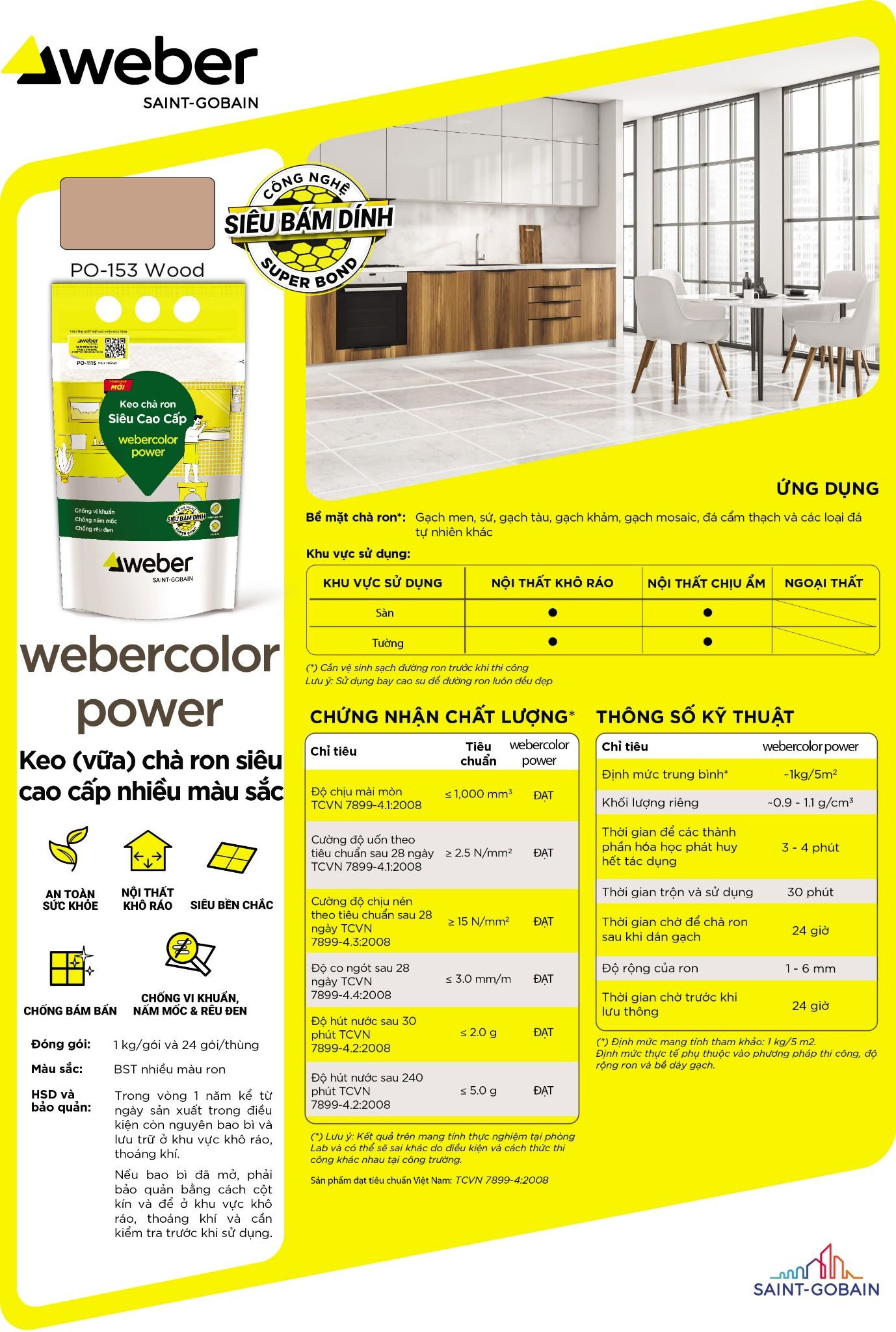 Thông số kỹ thuật Keo chà ron weber PO-153 Wood